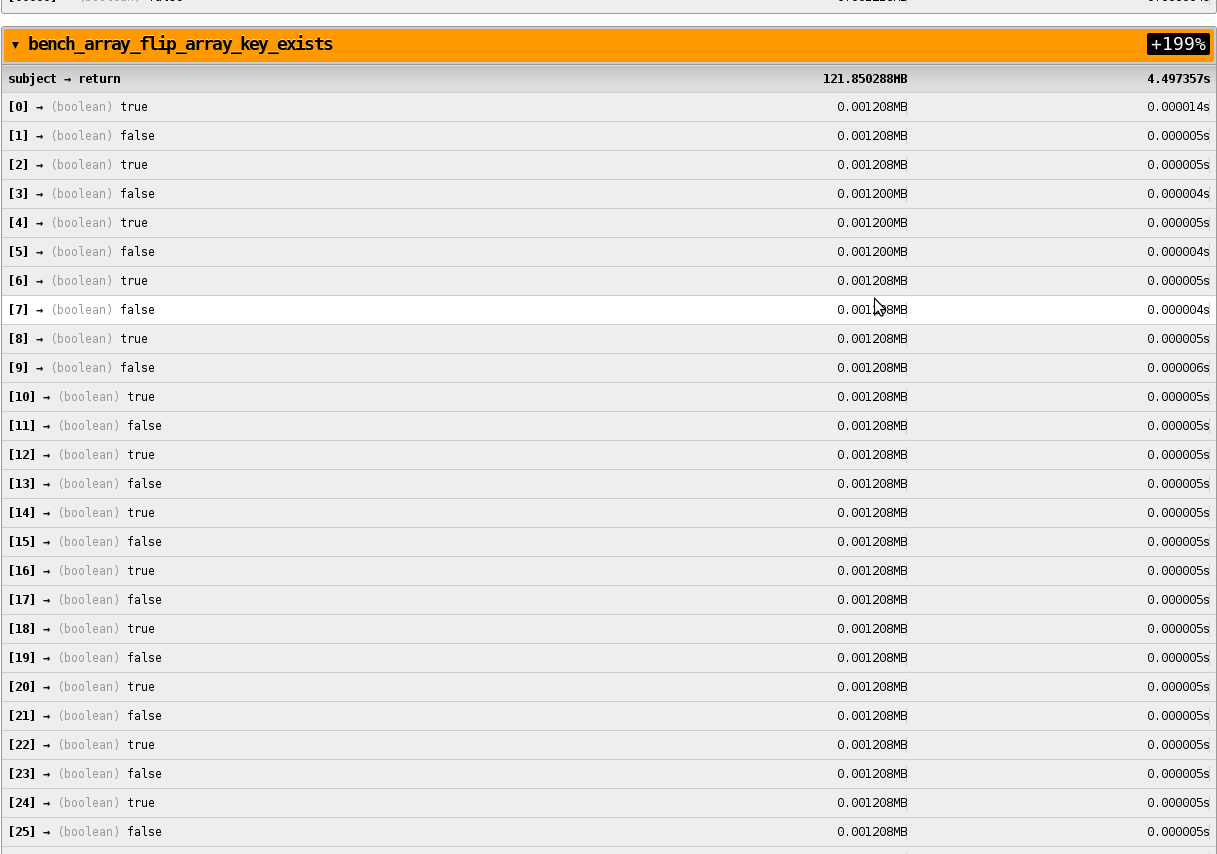 public function bench_array_flip_isset($needle) { return isset($this->flipped_haystack[$needle]); } public function bench_array_flip_array_key_exists($needle) { return array_key_exists($needle, $this->flipped_haystack); } |